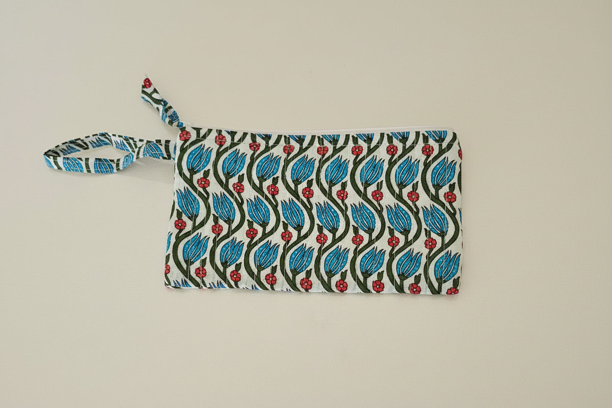 Perfect for everyday use, this hand printed quilted beauty bag combines functionality with timeless style.