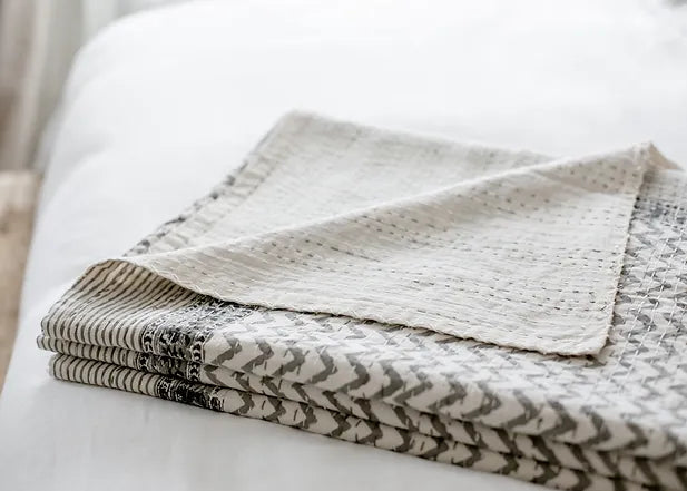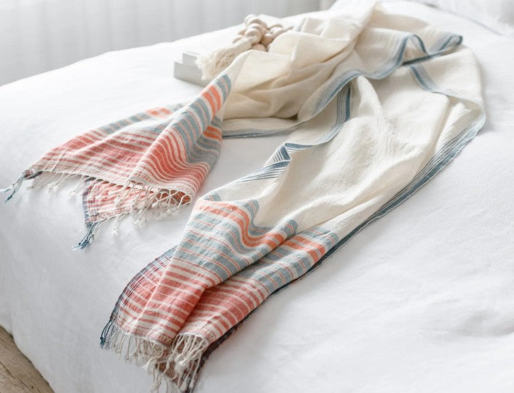Handgesponnene und handgewebte Schals, alle im eigenen Haus entworfen und von unseren Partnerwebern in Kutch, Indien, hergestellt. Diese Kollektion wurde aus biologisch angebauter einheimischer Baumwolle der alten Welt hergestellt.